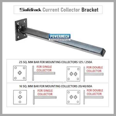 POWERMECH offers Genuine SAFETRACK DSL Current Collector assembly consists of a spring loaded sliding contact type shoe of sintered copper graphite. Heavy duty double arm current collector provides multi axis degree of flexible movement. Exposed parts of current collectors shall be grounded and of corrosion-resistant material. Current collector assembly shall be designed to operate through gaps, splices, switches and shall be self centring.