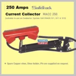 Powermech offers original copper / carbon contact shoe for 250 ampere DSL Shrouded busbar current collectors. In addition, copper shoe holder, pin or current collector assembly with cable is also supplied on request.