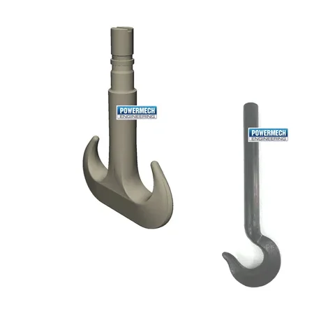 POWERMECH offers high quality crane lifting hooks from 250kgs to 200ton capacity. Machined Crane hook also can be supplied with Nut on request.